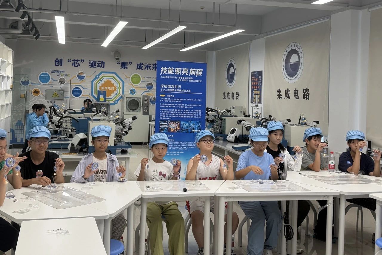 探秘微观小世界,播撒理想新火种。7月12日,技师学院发挥电子信息行业办学特色,精心打造2025年青少年职业体验项目——“探秘微观世界:小小工程师的半导体封装之旅”。该活动是北京市人社局“技能照亮前程”青少年职业体验活动的其中一项,吸引了多个年龄段的中小学生报名参加。在技师学院国家级技能大师的带领下,学生们亲手操作半导体封装的真实工艺,安装链接芯片和元件支架,感受真实的集成电路工程师的技能操作,在“小小工程师”心里播撒下一颗投身集成电路产业的梦想种子。