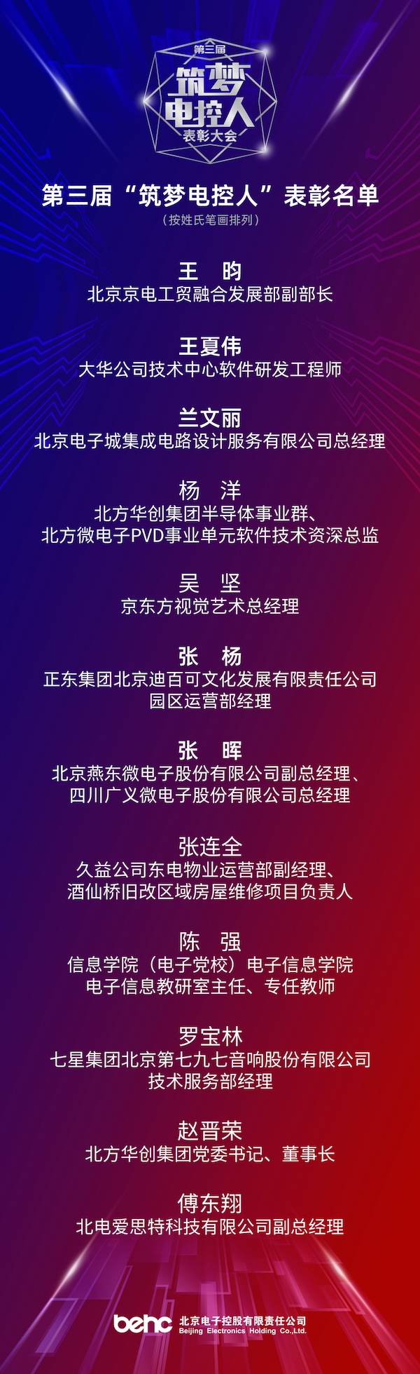 本次获表彰的“筑梦电控人”共12位,他们当中既有经营管理者也有一线生产服务人员,既有科研带头人也有技术能手,既有经验丰富的老同志也有年富力强的青年骨干,具有广泛的代表性和先进性。表彰活动分为“创新引领”“奋进笃行”“逐梦筑梦”三个篇章,通过人物专题视频、现场颁奖、文艺表演相结合的形式,生动展现了新征程上电控人的优秀品质和卓越风采。